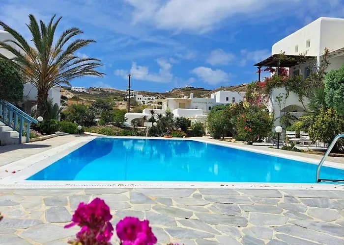 Die 1-Zimmer- Ilios Cozy Poolhouse Mykonos verfügt über eine Terrasse mit Blick auf den Garten und ist 10 Autominuten vom Flughafen Mykonos entfernt gelegen.
